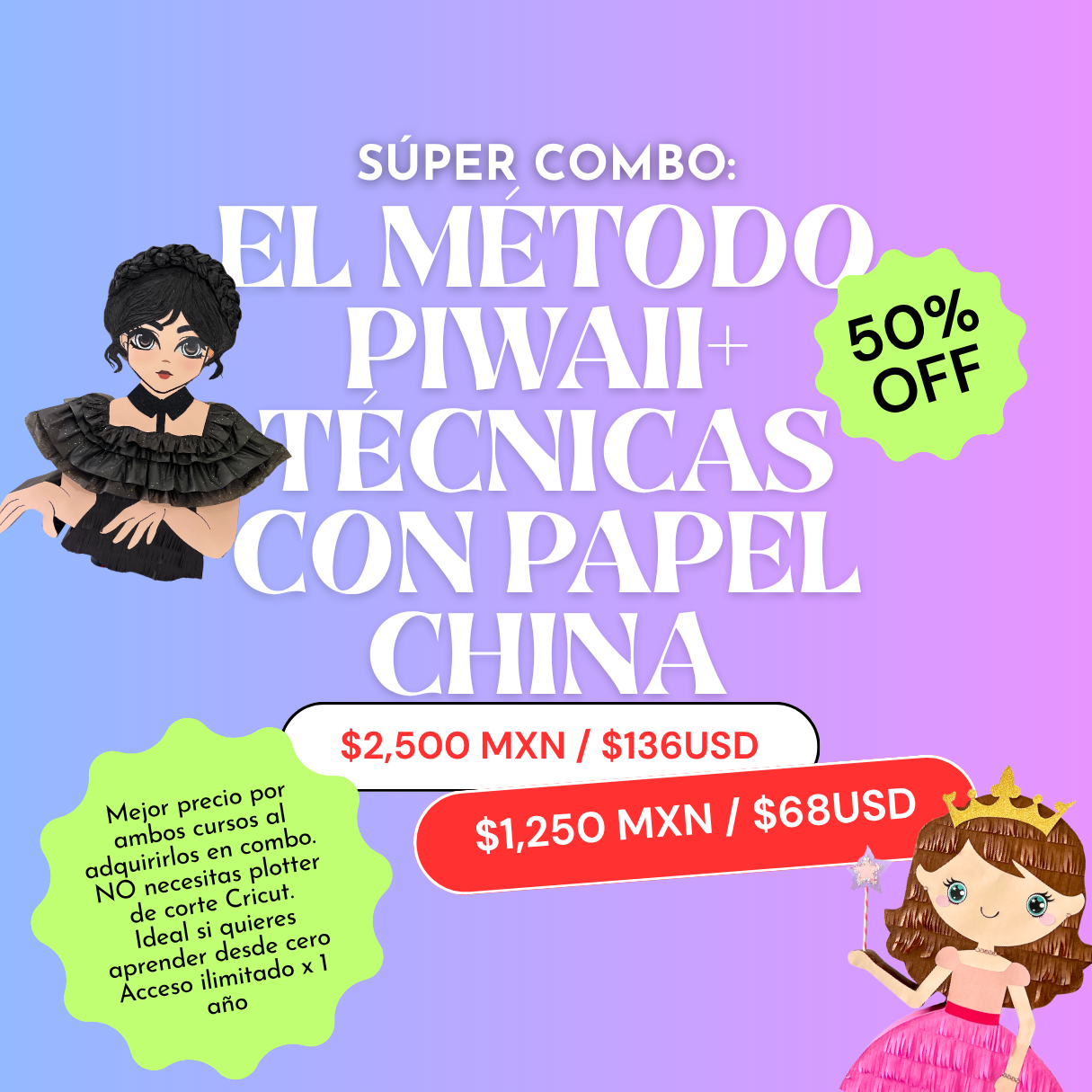 Este programa incluye nuestros 2 cursos: El Método Piwaii, donde aprenderás a hacer tus propias piñatas desde escoger el diseño hasta ponerle el último detalle, y Técnicas en papel china, en el cual aprenderás 8 técnicas para trabajar los acabados y detalles de tus piñatas. Este programa es ideal si quieres comenzar a emprender tu negocio de piñatas.