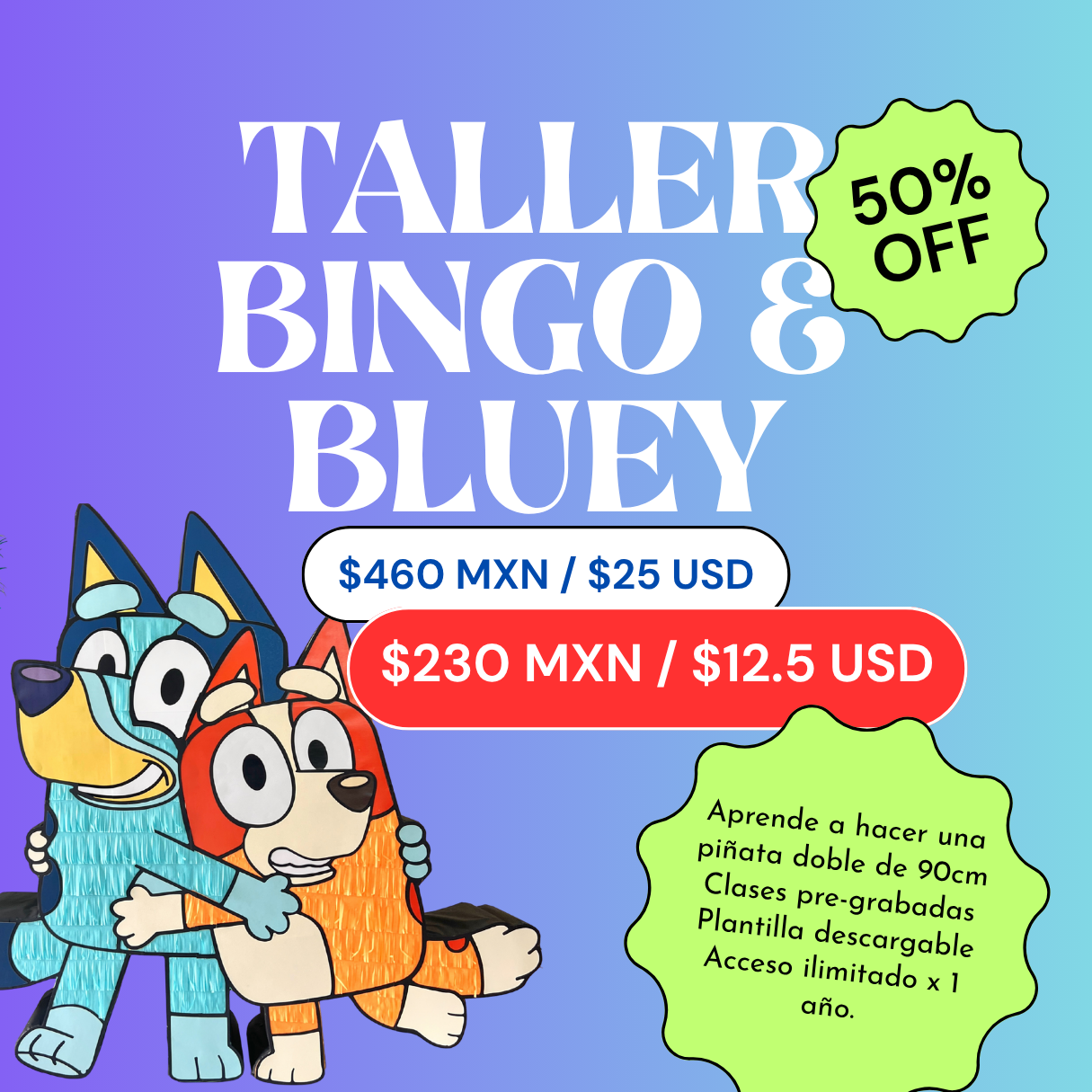 Construye una piñata doble de Bluey y Bingo con nuestro molde. Incluye el video de clase online grabada el pasado 27 de julio 2024 por zoom. En este video te doy instrucciones claras y puedes descargar un archivo con los materiales fáciles de conseguir. Este taller incluye molde de 90cm en formato tabloide y carta para que puedas crear una piñata que hará que la fiesta sea inolvidable.